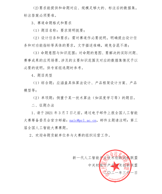 关于第三届“全国人工智能大赛” 赛道征集的通知